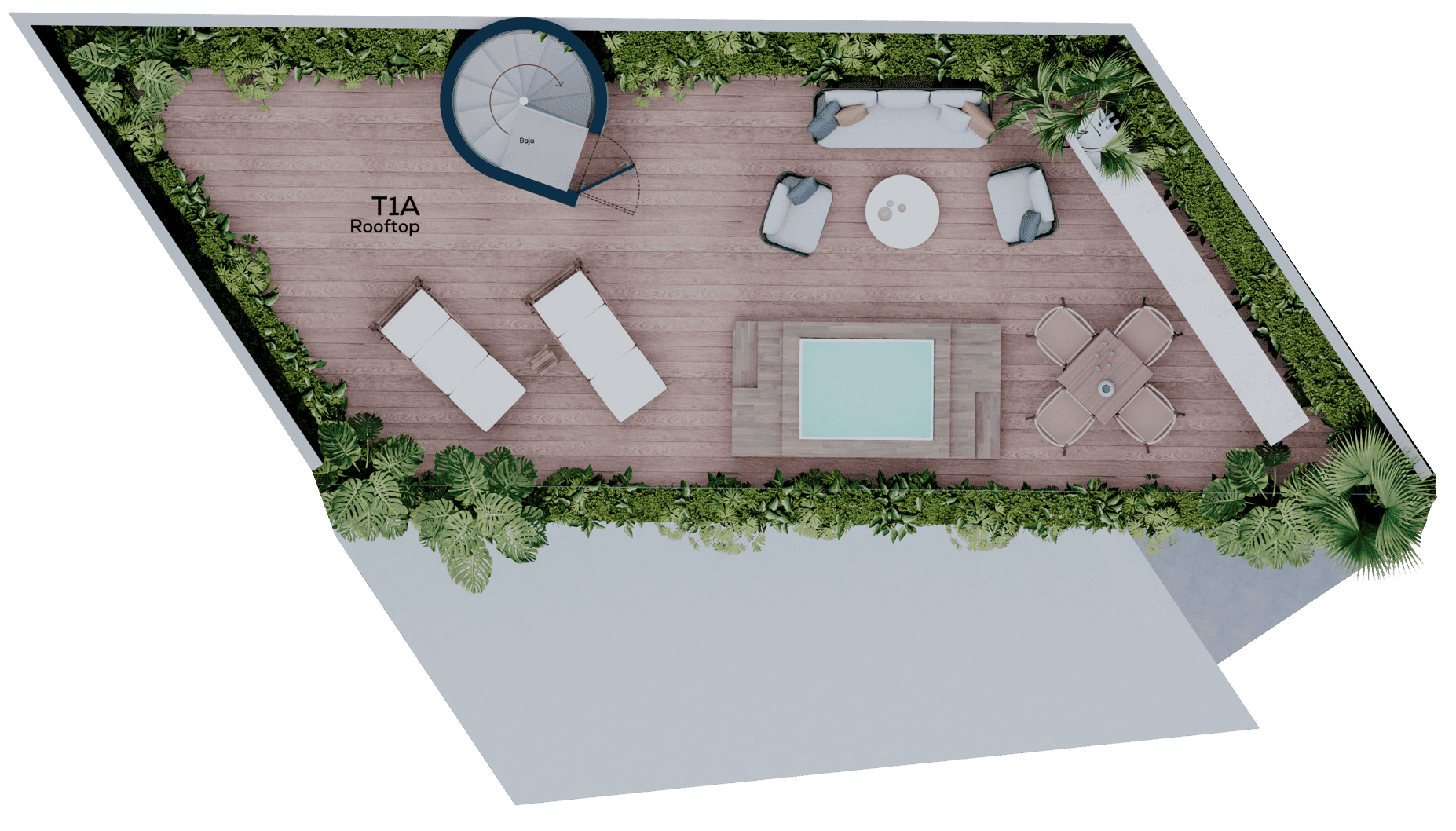 25 Tipologías de Suites que se adaptan a todas tus necesidades. Espacios desde 41.02 m² con balcón hasta 204.91 m² con balcón y rooftop